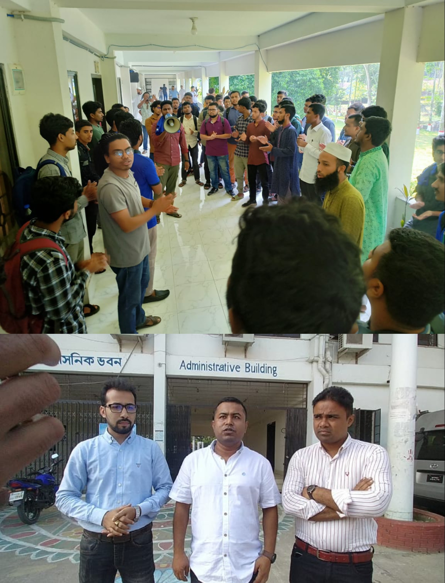 ভারপ্রাপ্ত প্রক্টর সহকারী অধ্যাপক ড. সাদিকুর রহমান বলেন, আমাদের এটা রাজনীতি মুক্ত ক্যাম্পাস। ব্যানারে প্রোগ্রাম করা বা রাজনৈতিক পরিচয় ক্যাম্পাসে প্রবেশ করা নিষেধ। আগত ছাত্রদল নেতাদের এসব বোঝালে তারা বলে আমাদের এখানে ছাত্রদের কোনো বিষয় থাকবে না। এরপর তারা উপাচার্য স্যারের এখানে আসে সাধারণ শিক্ষার্থীরাও আসে সবার মাঝে কথা হয়, আপনারাও দেখেছেন। পরে তারা চলে যায়।