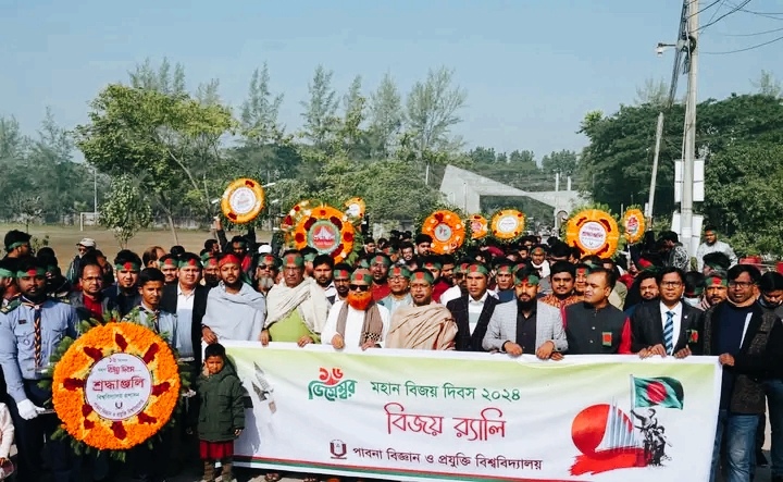 পাবনা বিজ্ঞান ও প্রযুক্তি বিশ্ববিদ্যালয়ে আজ সোমবার (১৬ ডিসেম্বর) উৎসবমুখর পরিবেশে মহান বিজয় দিবস উদযাপন করা হয়েছে।
