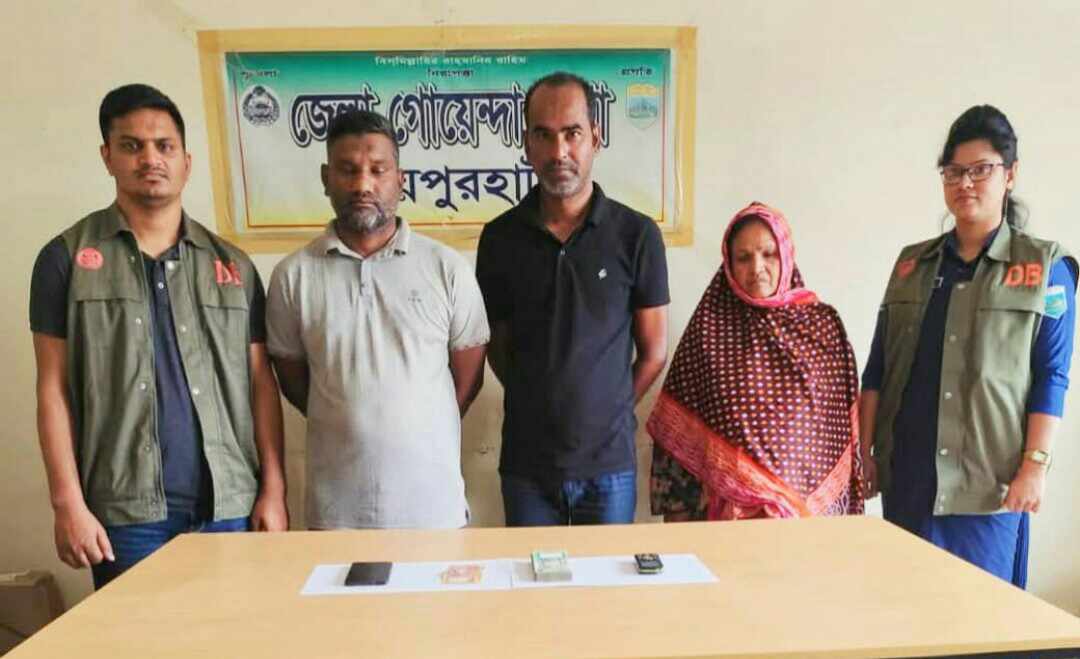 টাকা লেনদেনের সময় হাতেনাতে ধরা পড়ে—পারভেজ হোসেন (৩৫) কাজী মাহফুজুর রহমান (৫০) ও সাবিনা ইয়াসমিন (৩০)