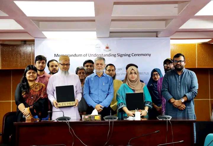 আজ ২২মার্চ (শনিবার) দুপুর ২টায় বিশ্ববিদ্যালয়ের সভাকক্ষে এই সমঝোতা চুক্তিটি স্বাক্ষরিত হয়েছে। মাওলানা ভাসানী বিজ্ঞান ও প্রযুক্তি বিশ্ববিদ্যালয়ের পক্ষে চুক্তি স্বাক্ষর করেন বিশ্ববিদ্যালয়ের রেজিস্ট্রার ড. মোহা. তৌহিদুল ইসলাম। এ সময় উপস্থিত ছিলেন বিশ্ববিদ্যালয়ের ভাইস-চ্যান্সেলর অধ্যাপক ড. মোঃ আনোয়ারুল আজীম আখন্দ ও সামাজিক বিজ্ঞান অনুষদের ডিন অধ্যাপক ড. মোঃ নাজমুস সাদেকীনসহ বিভাগের চেয়ারম্যান ও শিক্ষকবৃন্দ। অপর দিকে মৌলভি বাড়ির পক্ষে চুক্তিটি স্বাক্ষর করেন প্রতিষ্ঠানের ম্যানেজিং পার্টনার তামান্না জাহান। এসময় আরও উপস্থিত ছিলেন প্রতিষ্ঠানের পরিচালক ড. মোঃ মাহবুবুর রহমান ও মার্কেটিং ম্যানেজার মোঃ মাসুদুর রহমান।