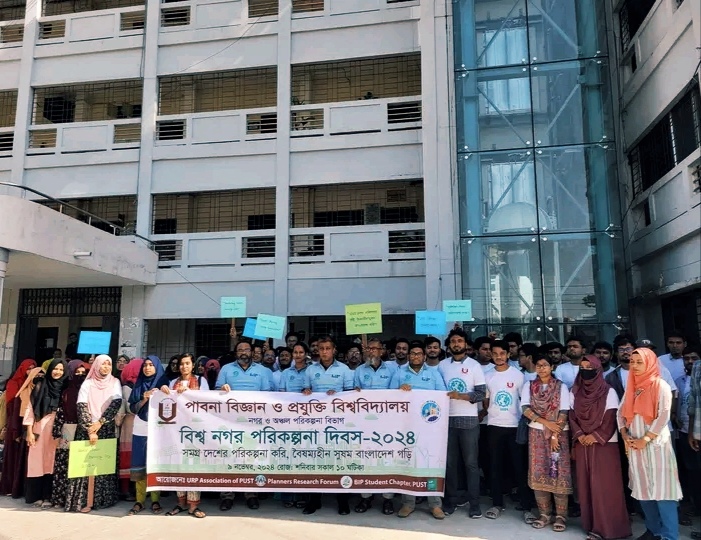 “সমগ্র দেশের পরিকল্পনা করি, বৈষম্যহীন সুষম বাংলাদেশ গড়ি” এই প্রতিপাদ্য সামনে রেখে পাবনা বিজ্ঞান ও প্রযুক্তি বিশ্ববিদ্যালয়ের (পাবিপ্রবি) নগর ও অঞ্চল পরিকল্পনা বিভাগের আয়োজনে আজ বিশ্ব নগর পরিকল্পনা দিবস উদযাপন করা হয়েছে।