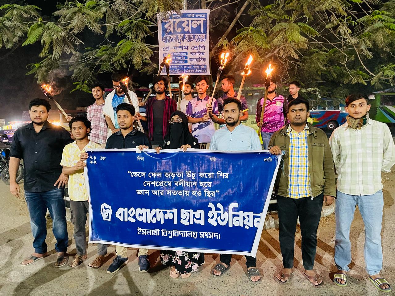 মঙ্গলবার (১৮ ফেব্রুয়ারি) সন্ধ্যা সাড়ে ৬ টায় বিশ্ববিদ্যালয়ের জিয়া মোড় থেকে এ মশাল মিছিল শুরু হয়। মিছিলটি ক্যাম্পাসের বিভিন্ন সড়ক প্রদক্ষিণ করে প্রধান ফটকে এসে শেষ হয়। পরে সেখানে তারা সংক্ষিপ্ত সমাবেশ করে।