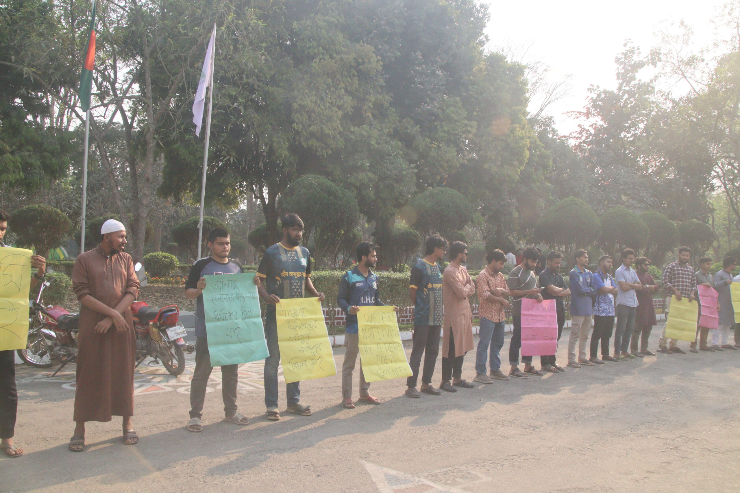 ভূমি সম্প্রসারণের দাবিতে খুবি শিক্ষার্থীদের মানববন্ধন