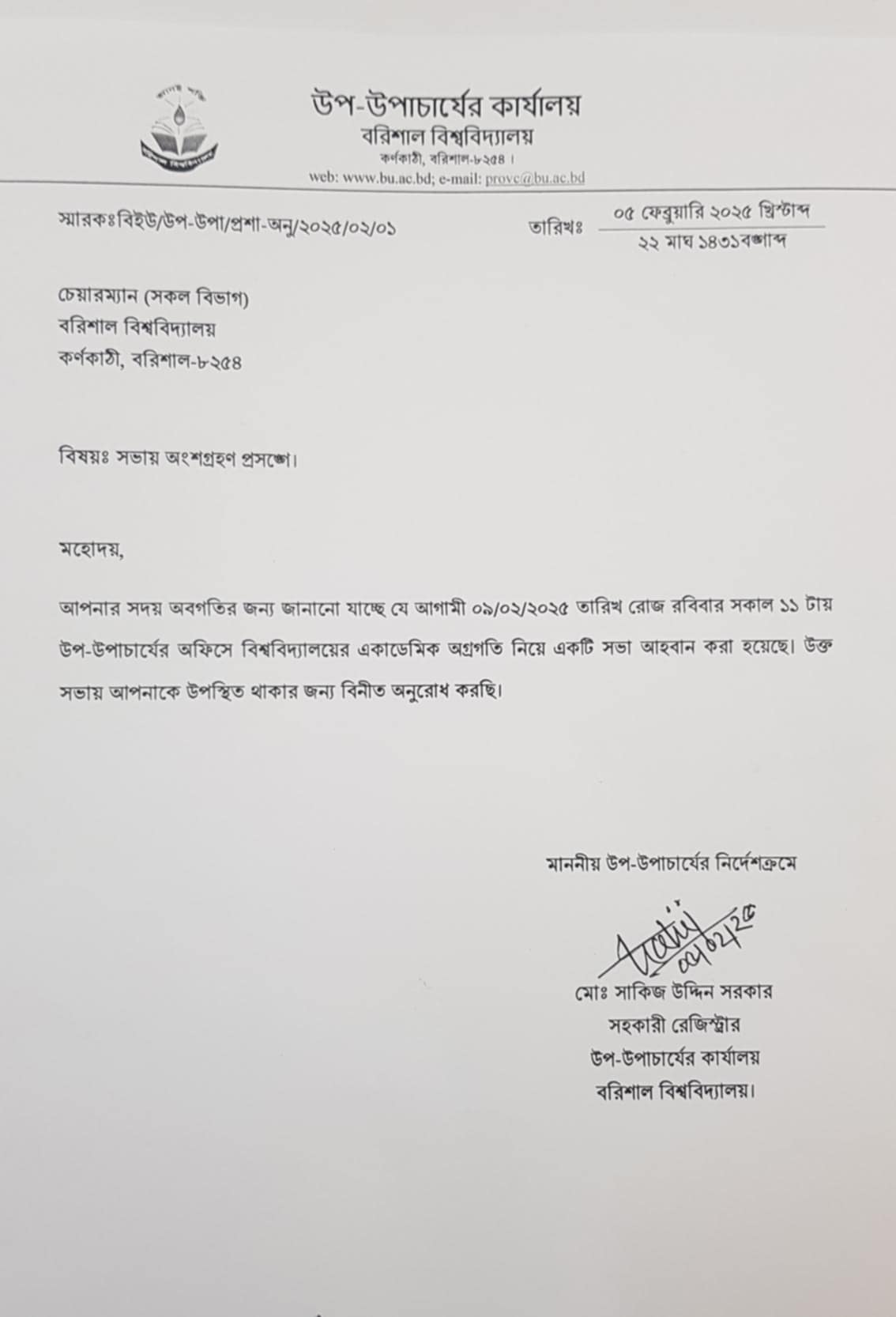 উপ-উপাচার্য অধ্যাপক গোলাম রব্বানির জারিকৃত নোটিশে দেখা যায় ,আগামী ৯ ফেব্রুয়ারি রবিবার সকাল ১১টায় উপ-উপাচার্যের অফিসে বিশ্ববিদ্যালয়ের অ্যাকাডেমিক অগ্রগতি নিয়ে একটি সভা আহবান করা হয়। সেখানে সকল বিভাগের চেয়ারম্যানদের উপস্থিত থাকার জন্য অনুরোধ জানানো হয়।