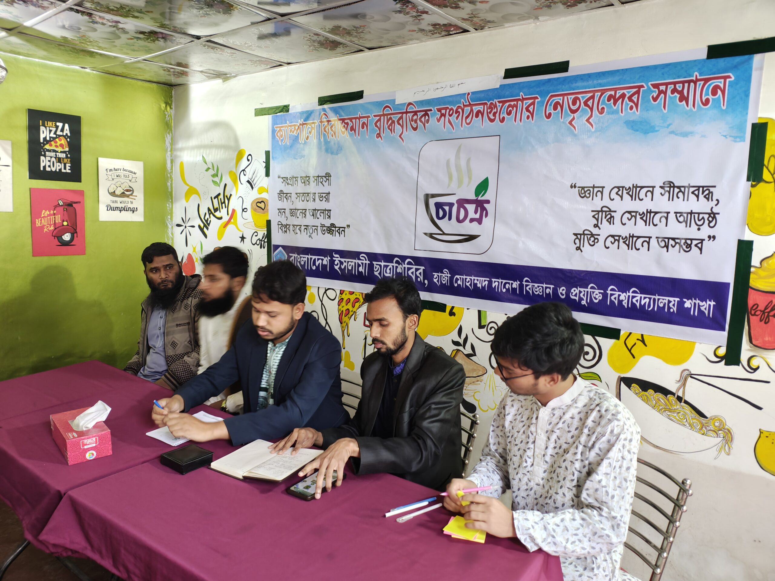 দিনাজপুরের হাজী মোহাম্মদ দানেশ বিজ্ঞান ও প্রযুক্তি বিশ্ববিদ্যালয়ের (হাবিপ্রবি) ক্যাম্পাসে বিরাজমান প্রায় ৪০ টি বুদ্ধিবৃত্তিক সংগঠনের সাথে ‘চা-চক্র’ অনুষ্ঠানের আয়োজন করে বাংলাদেশ ইসলামী ছাত্রশিবির, হাবিপ্রবি শাখা।