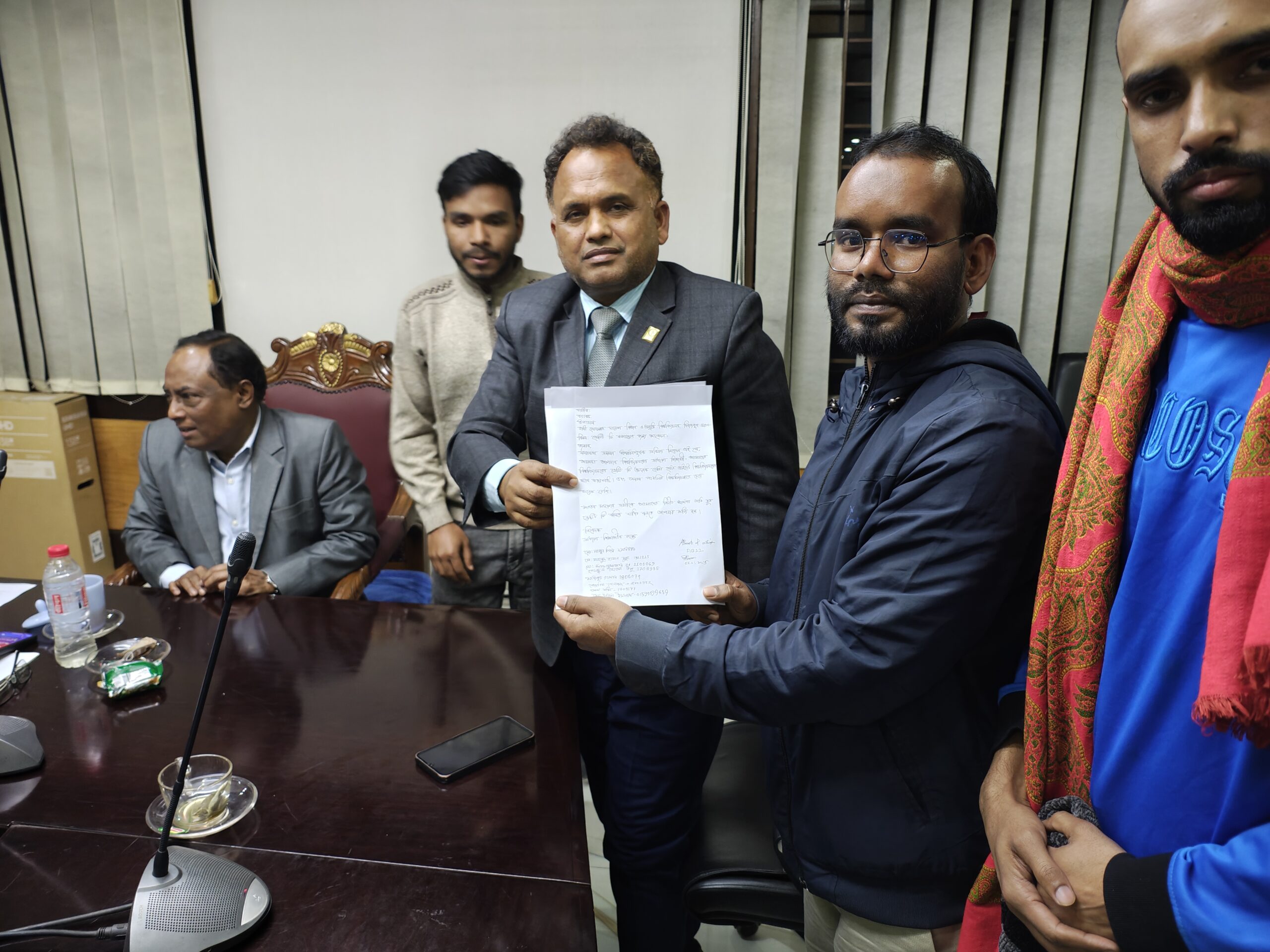 মঙ্গলবার (৭ জানুয়ারি ) সন্ধ্যা ৬ টায় বিশ্ববিদ্যালয়ের ভিআইপি কনফারেন্স রুমে বিশ্ববিদ্যালয়ের উপ-উপাচার্য অধ্যাপক ড. মোঃ শফিকুল ইসলাম সিকদার এর কাছে লিখিত আবেদনপত্র জমা দেন বৈষম্য বিরোধী ছাত্র আন্দোলনের শিক্ষার্থীরা।